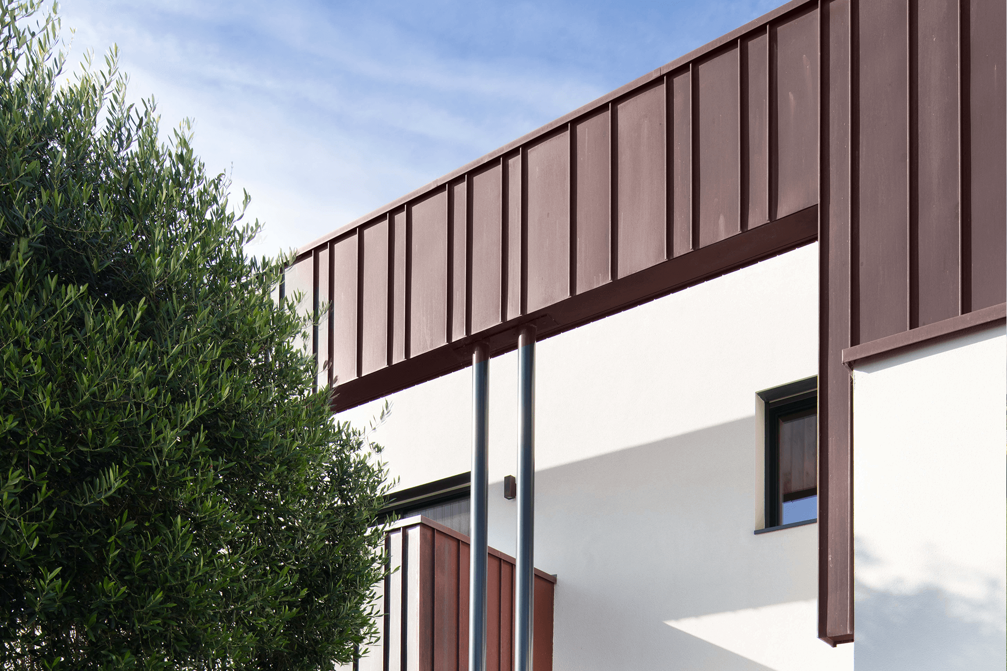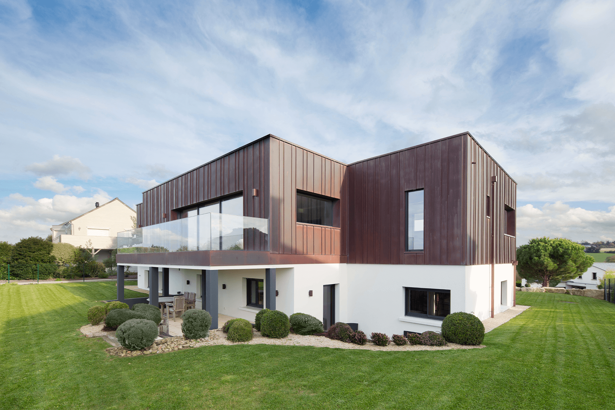 Un bardage en cuivre pré-patiné en joints debout l’a rhabillée pour lui donner du caractère.