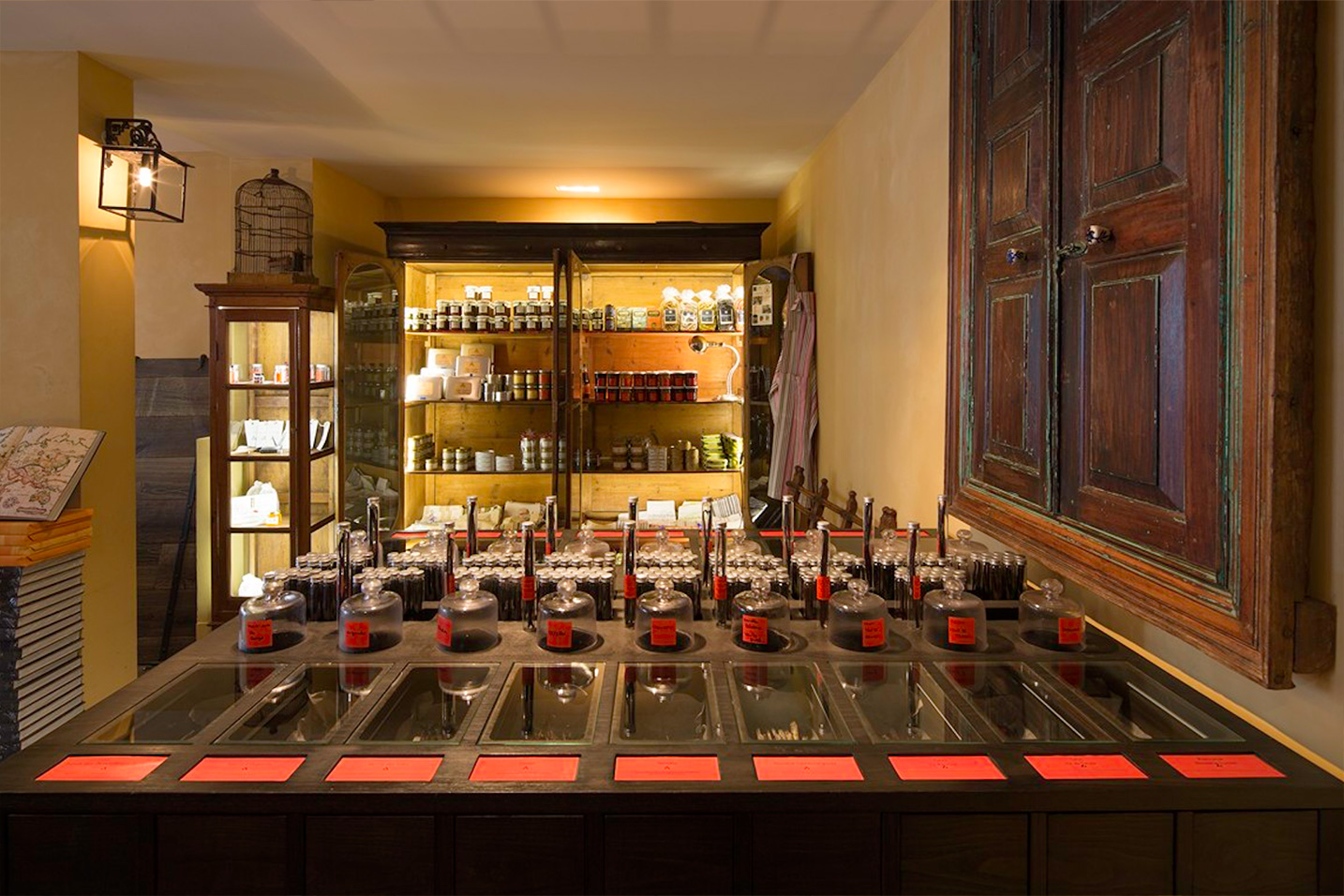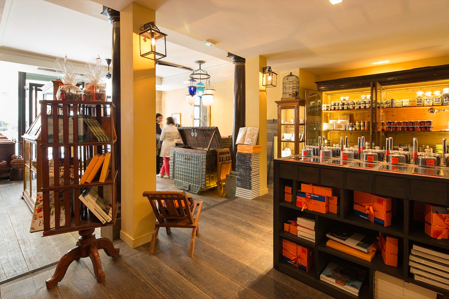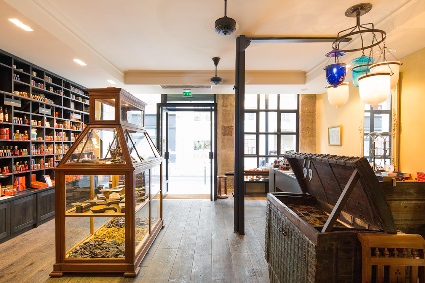 Notre équipe d’architectes a entièrement rénovée l’adresse parisienne des Epices Roellinger de la cave voûtée à la boutique. Transformée en échoppe orientale, nos décorateurs d’intérieur ont chiné l’ancienne vitrine du musée de Pondichéry et le meuble d’apothicaire pour abriter l’impressionnante collection d’épice ainsi qu’une malle s’ouvrant sur une bibliothèque de poivres. Le parquet vieilli, les colonnes, portes à seuil, ventilateurs et lampes en cristal chinés en Inde invite au voyage.